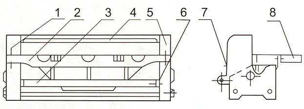 - 托料架用螺釘連接成一整體,構成框架式機體結構。